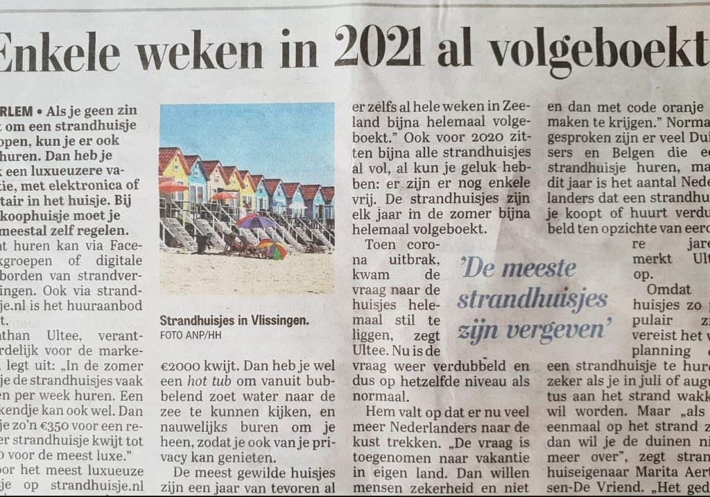 Ook voor 2020 zitten bijna alle strandhuisjes al vol.