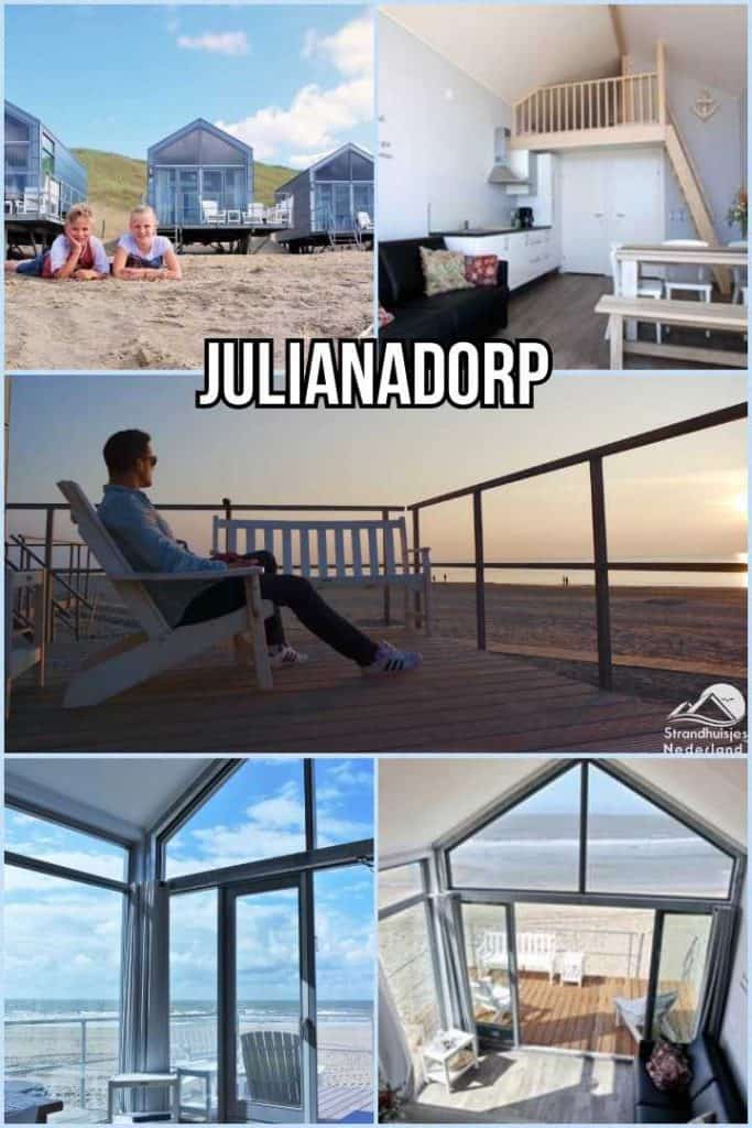 In JULIANADORP staan de meeste strandhuisjes van dezelfde soort: 90. Ze hebben een rustige uitstraling met veel tussenruimte; zo zie je altijd nog veel van de brede duinen als je naar de strandhuisjes kijkt.